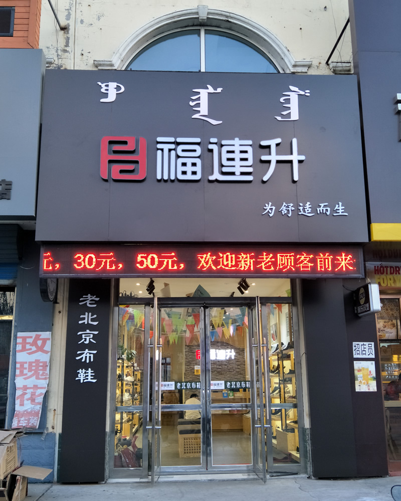 在此,福連升健康休閑中年鞋(原福連升(原福聯(lián)升)老北京布鞋)全體員工祝賀:福連升中年鞋內蒙通遼市科爾沁左翼中旗寶龍山鎮(zhèn)二店開業(yè)大吉、生意紅火、財源廣進!誠邀各地有志之士加盟合作,共享輝煌!