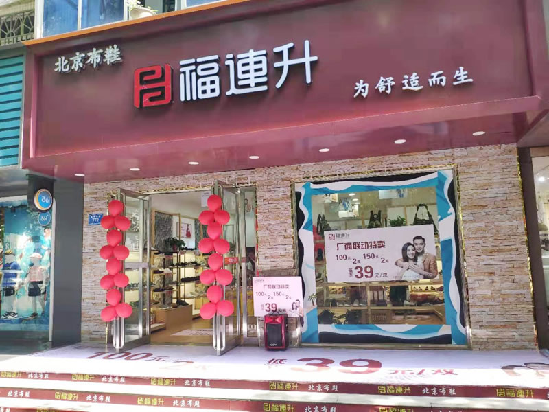 在此,福連升健康舒適休閑鞋(原福聯升老北京布鞋)全體員工祝賀:福連升品牌河北石家莊北國益安購物中心店開業(yè)大吉、生意紅火、財源廣進!誠邀各地有志之士加盟合作,共享輝煌!...