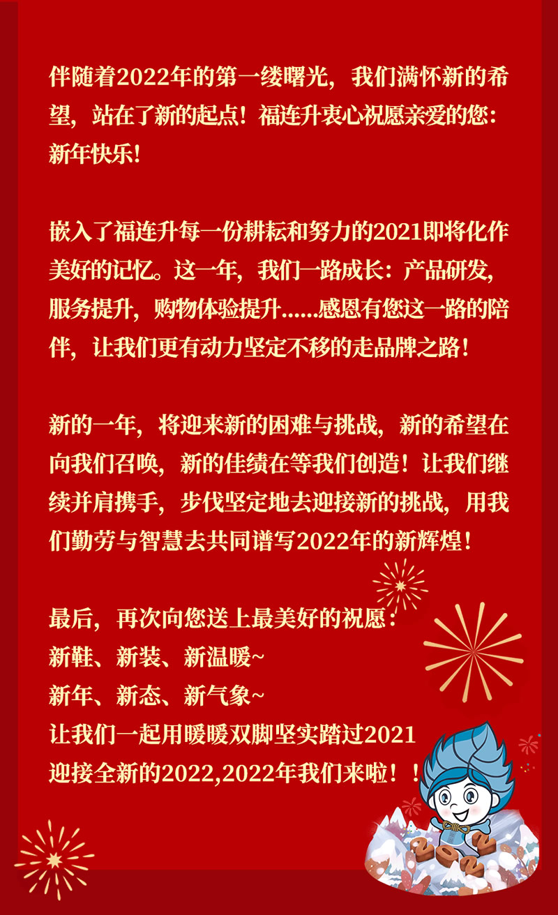 福連升祝全國(guó)人民新年快樂!2022不忘初心,堅(jiān)定品牌之路!
